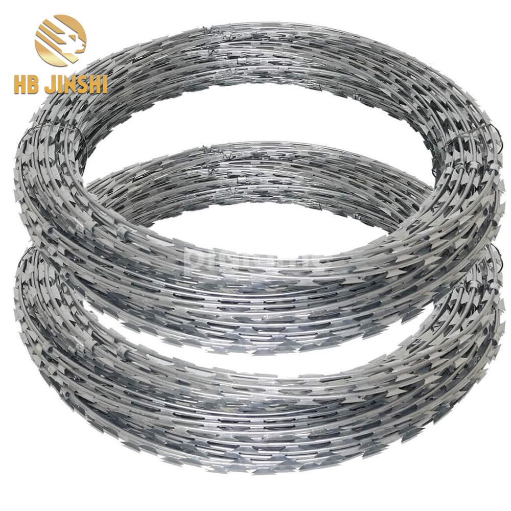 الأسلاك الشائكة النصلية، والمعروفة أيضًا باسم الأسلاك الشائكة المكشطة، هي نوع جديد من منتجات شبكات الحماية يتميز بحماية متطورة وقدرة عزل قوية. تتميز الأشواك الحادة على شكل سكين بخيوط مزدوجة على شكل منفاخ، مما يجعلها جميلة ومخيفة في الوقت نفسه. كما أنها تتميز بتأثير رادع جيد. في الوقت نفسه، يتميز المنتج بمظهر جميل وتأثير جيد في منع الانسداد وبنية مريحة. تُستخدم الأسلاك الشائكة النصلية بشكل عام في السجون للحماية. نظرًا لحدة الشفرة وصعوبة لمسها، فإن لها تأثيرًا رادعًا معينًا. تُستخدم الأسلاك الشائكة النصلية على نطاق واسع، حيث يمكن استخدامها لحماية جدران السكان ويمكن استخدامها أيضًا في السياج. تتميز الأسلاك الشائكة بتأثير أفضل ضد السرقة من الأسلاك الشائكة العادية، وسعرها المناسب، مما يجعلها أكثر استخدامًا على نطاق واسع. تُعرف الأسلاك الشائكة النصلية أيضًا باسم الأسلاك الشائكة النصلية، وهي نوع جديد من منتجات الحماية يتميز بحماية متطورة وقدرة عزل قوية.